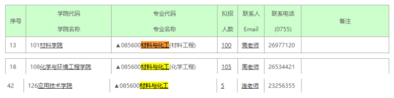 首先特别要注意的是,深圳大学一共开设了三个材料与化工专业,且归属于不同学院的,分别是材料学院的085600材料与化工(材料工程)、化学与环境工程学院的085600材料与化工(化学工程)和应用技术学院的085600材料与化工。