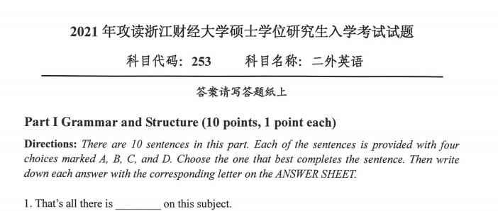 完整版请下载附件:2021年浙江财经大学253二外英语考研真题(完整版)