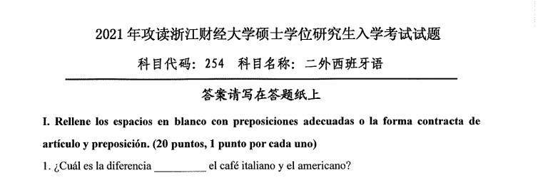 完整版请下载附件:2021年浙江财经大学254二外西班牙语考研真题(完整版)