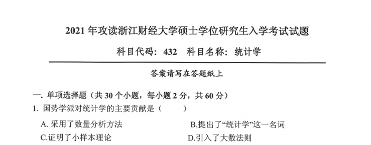 完整版请下载附件:2021年浙江财经大学432统计学考研真题(完整版)