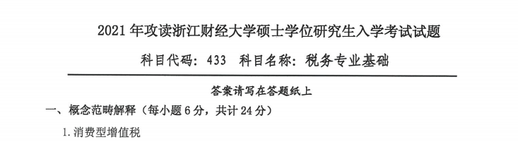 完整版请下载附件:2021年浙江财经大学433税务专业基础考研真题(完整版)