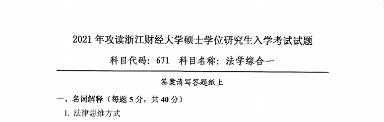 完整版请下载附件:2021年浙江财经大学671法学综合一考研真题(完整版)
