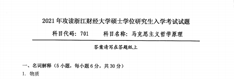 完整版请下载附件:2021年浙江财经大学701马克思主义哲学原理考研真题(完整版)