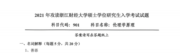 完整版请下载附件:2021年浙江财经大学901伦理学原理考研真题(完整版)