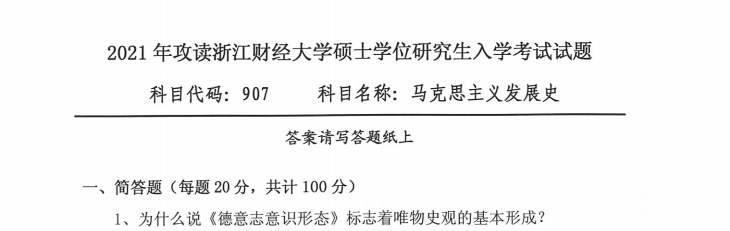 完整版请下载附件:2021年浙江财经大学907马克思主义发展史考研真题(完整版)