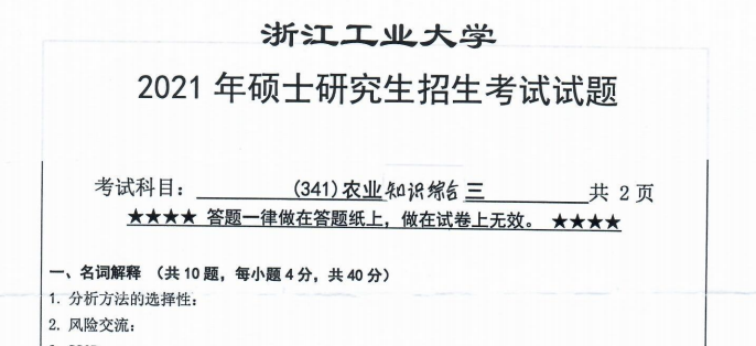完整版请下载附件:2021年浙江工业大学341农业知识综合三考研真题(完整版)