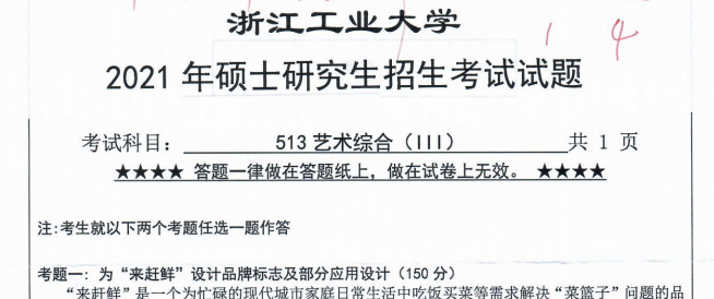 以上是聚创考研网为考生整理的"2021年浙江工业大学513艺术综合(III)考研真题(完整版)"的相关考研信息,希望对大家考研备考有所帮助! 备考过程中如有疑问,也可以添加老师微信juchuang911进行咨询。