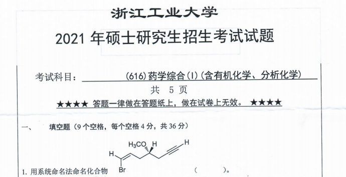 完整版请下载附件:2021年浙江工业大学616药学综合(I)考研真题(完整版)