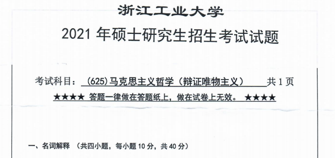 完整版请下载附件:2021年浙江工业大学625马克思主义哲学考研真题(完整版)