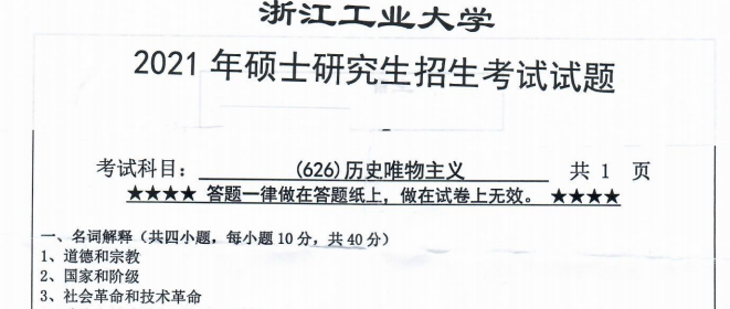 完整版请下载附件:2021年浙江工业大学626历史唯物主义考研真题(完整版)