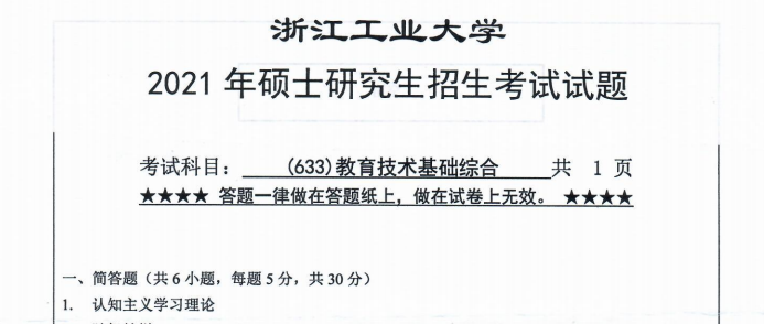 完整版请下载附件:2021年浙江工业大学633教育技术基础综合考研真题(完整版)