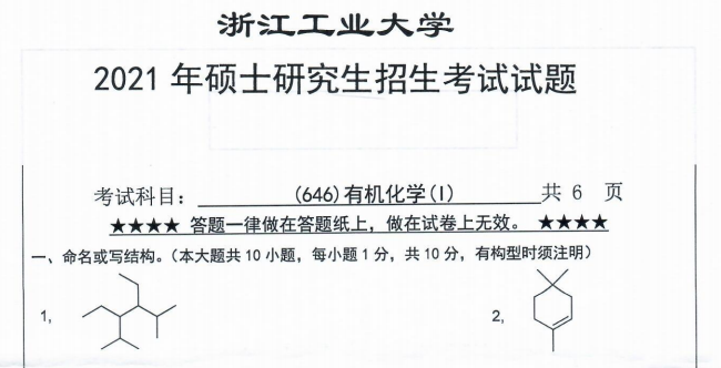 完整版请下载附件:2021年浙江工业大学646有机化学(I)考研真题(完整版)