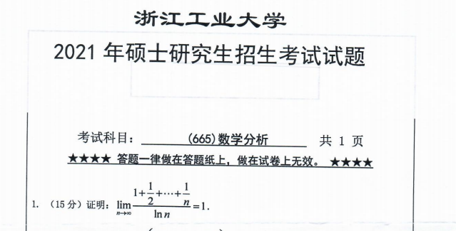 完整版请下载附件:2021年浙江工业大学665数学分析考研真题(完整版)
