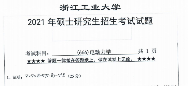 完整版请下载附件:2021年浙江工业大学666电动力学考研真题(完整版)