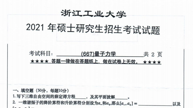 完整版请下载附件:2021年浙江工业大学667量子力学考研真题(完整版)