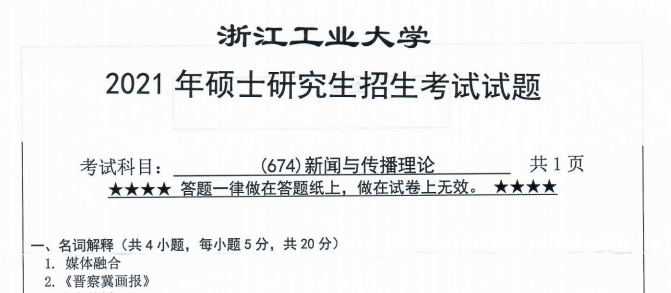 完整版请下载附件:2021年浙江工业大学674新闻与传播理论考研真题(完整版)