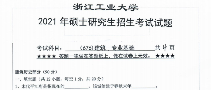 以上是聚创考研网为考生整理的"2021年浙江工业大学676建筑专业基础考研真题(完整版)"的相关考研信息,希望对大家考研备考有所帮助! 备考过程中如有疑问,也可以添加老师微信juchuang911进行咨询。