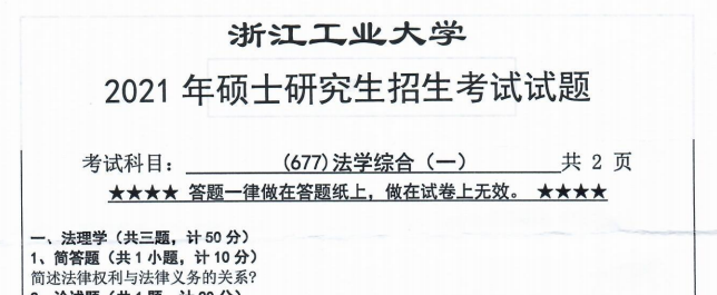 完整版请下载附件:2021年浙江工业大学677法学综合(一)考研真题(完整版)