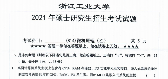 以上是聚创考研网为考生整理的"2021年浙江工业大学814微机原理(乙)考研真题(完整版)"的相关考研信息,希望对大家考研备考有所帮助! 备考过程中如有疑问,也可以添加老师微信juchuang911进行咨询。