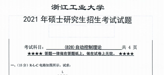 完整版请下载附件:2021年浙江工业大学828自动控制理论考研真题(完整版)