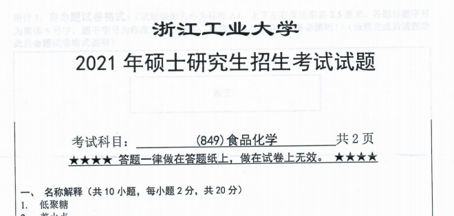 以上是聚创考研网为考生整理的"2021年浙江工业大学849食品化学考研真题(完整版)"的相关考研信息,希望对大家考研备考有所帮助! 备考过程中如有疑问,也可以添加老师微信juchuang911进行咨询。
