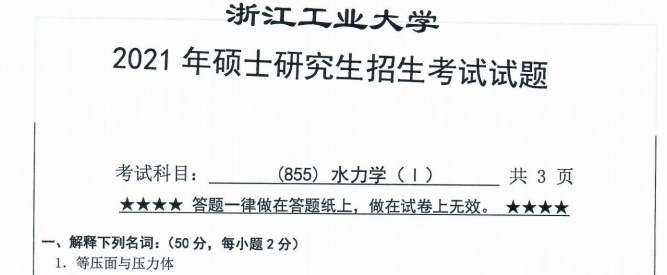 完整版请下载附件:2021年浙江工业大学855水力学(I)考研真题(完整版)