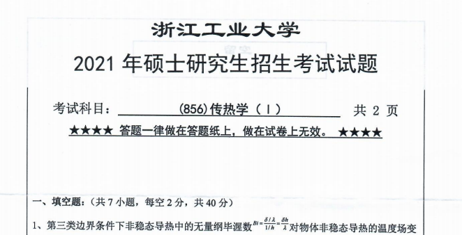 考研学习中,专业课占的分值较大。报考院校专业的考研专业课真题是专业课复习中必不可少的资料。聚创浙江工业大学考研网为大家整理了2021年浙江工业大学856传热学(I)考研真题(完整版),并且可以提供浙江工业大学考研专业课辅导,希望更多考生能够在专业课上赢得高分,升入理想的院校。