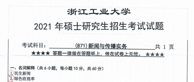 完整版请下载附件:2021年浙江工业大学871新闻与传播实务考研真题(完整版)