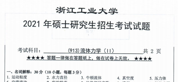 完整版请下载附件:2021年浙江工业大学913流体力学(II)考研真题(完整版)