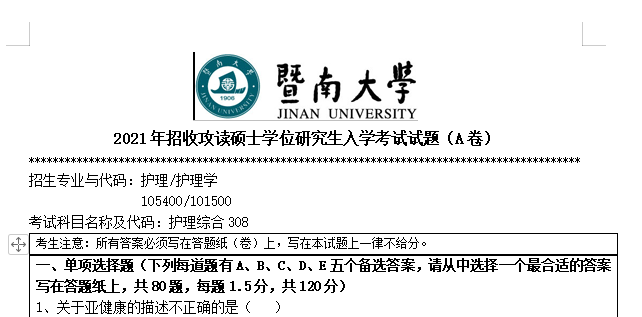 完整版请下载附件:2021年暨南大学308护理综合考研真题(完整版)