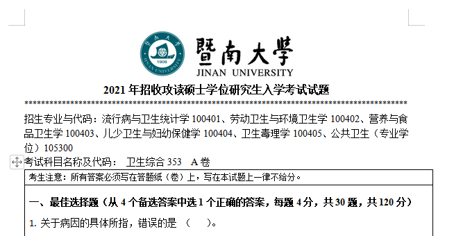 完整版请下载附件:2021年暨南大学353卫生综合考研真题(完整版)