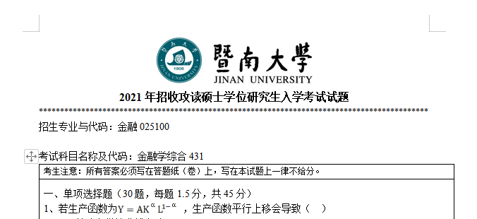 完整版请下载附件:2021年暨南大学431金融学综合考研真题(完整版)