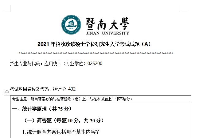 完整版请下载附件:2021年暨南大学432统计学考研真题(完整版)