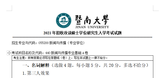 完整版请下载附件:2021年暨南大学440新闻与传播专业基础考研真题(完整版)