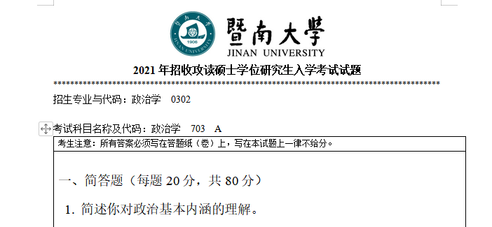 完整版请下载附件:2021年暨南大学703政治学考研真题(完整版)