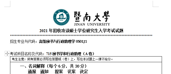 完整版请下载附件:2021年暨南大学715秘书学和行政助理考研真题(完整版)