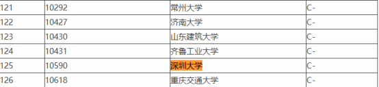 在全国第四轮机械工程学科评估排名中,深圳大学排名为125,学科评估为C-,学科实力一般般,没有很强劲。