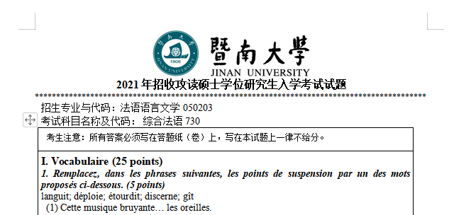 以上是聚创考研网为考生整理的"2021年暨南大学730综合法语考研真题(完整版)"的相关考研信息,希望对大家考研备考有所帮助! 备考过程中如有疑问,也可以添加老师微信juchuang911进行咨询。