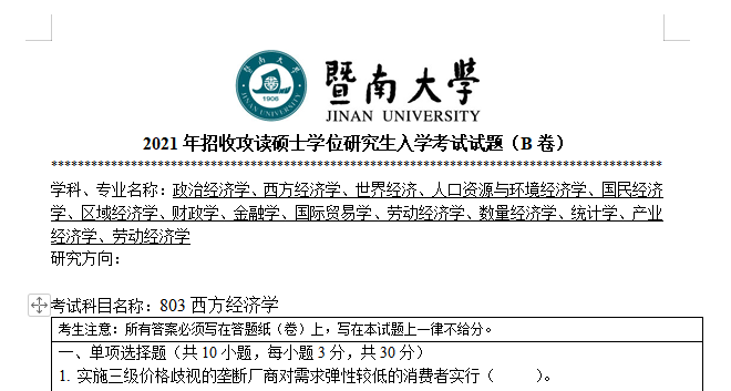以上是聚创考研网为考生整理的"2021年暨南大学803西方经济学考研真题(完整版)"的相关考研信息,希望对大家考研备考有所帮助! 备考过程中如有疑问,也可以添加老师微信juchuang911进行咨询。