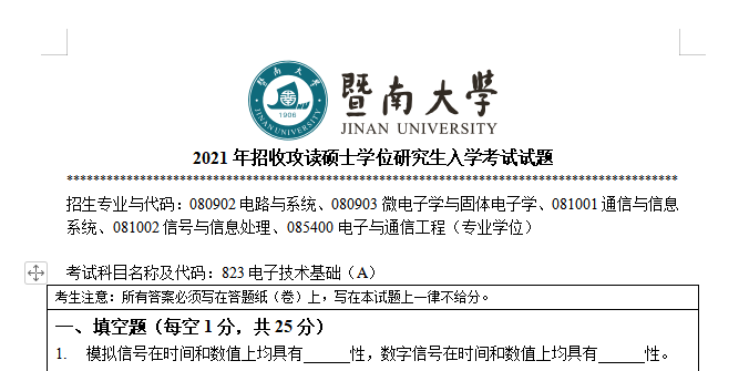 以上是聚创考研网为考生整理的"2021年暨南大学823电子技术基础考研真题(完整版)"的相关考研信息,希望对大家考研备考有所帮助! 备考过程中如有疑问,也可以添加老师微信juchuang911进行咨询。