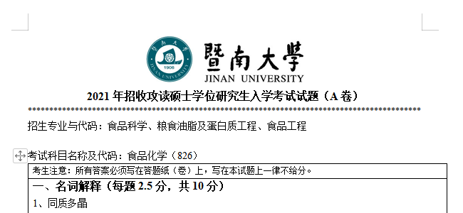 以上是聚创考研网为考生整理的"2021年暨南大学826食品化学考研真题(完整版)"的相关考研信息,希望对大家考研备考有所帮助! 备考过程中如有疑问,也可以添加老师微信juchuang911进行咨询。