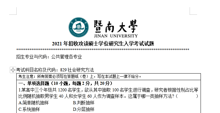 完整版请下载附件:2021年暨南大学829社会研究方法考研真题(完整版)
