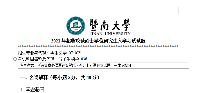 完整版请下载附件:2021年暨南大学836分子生物学考研真题(完整版)