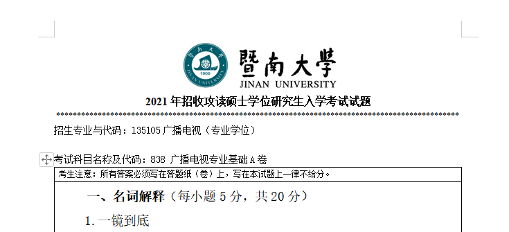 完整版请下载附件:2021年暨南大学838广播电视专业基础考研真题(完整版)