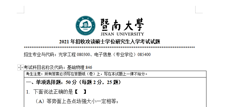 完整版请下载附件:2021年暨南大学846基础物理考研真题(完整版)