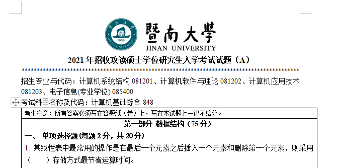 完整版请下载附件:2021年暨南大学848计算机基础综合考研真题(完整版)