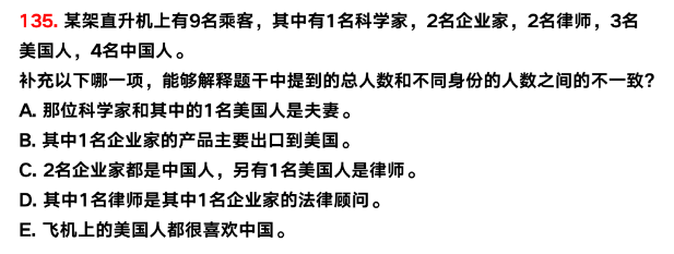 以上是聚创考研网为考生整理的"2022年管理类考研:逻辑部分-解释总人数和不同身份的人数之间的不一致Part.148"的相关考研信息,希望对大家考研备考有所帮助! 备考过程中如有疑问,也可以添加老师微信juchuang911进行咨询。