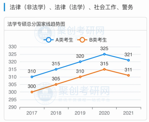 近些年法硕的国家线节节攀升,到21考研才有所下降,但预计未来国家线分数还会在320-325之间,可以说是竞争相当激烈。