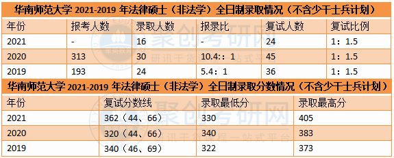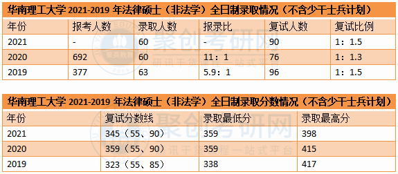 华南农业大学2021年录取情况:法律硕士(非法学)一志愿录取17 人(含专项计划2人),其中最高分355分,最低分335分(不含专项计划);
