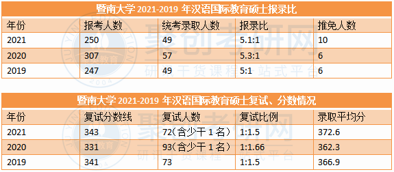 暨大汉硕复试分数线约345分,复试比例约在1:1.5。
